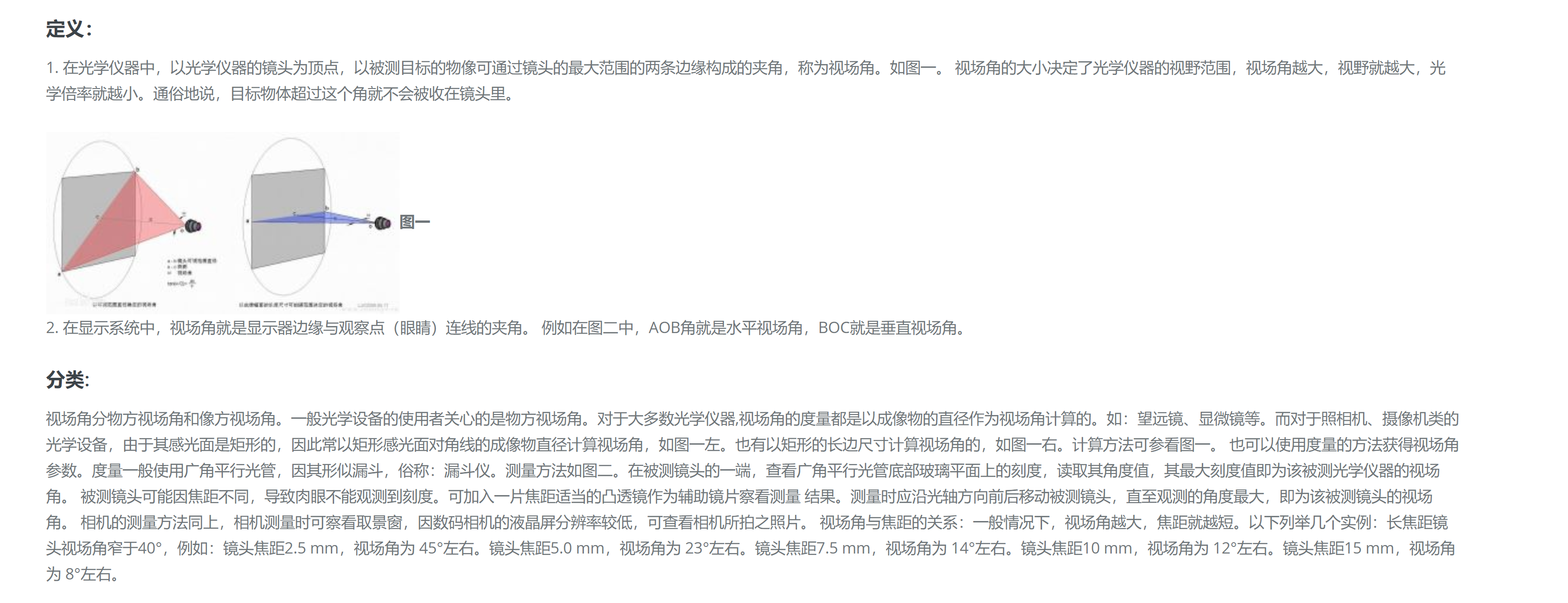 首先,什么是FOV?一句话概括:通俗来说,目标物体超过这个角就不会被收到镜头里。